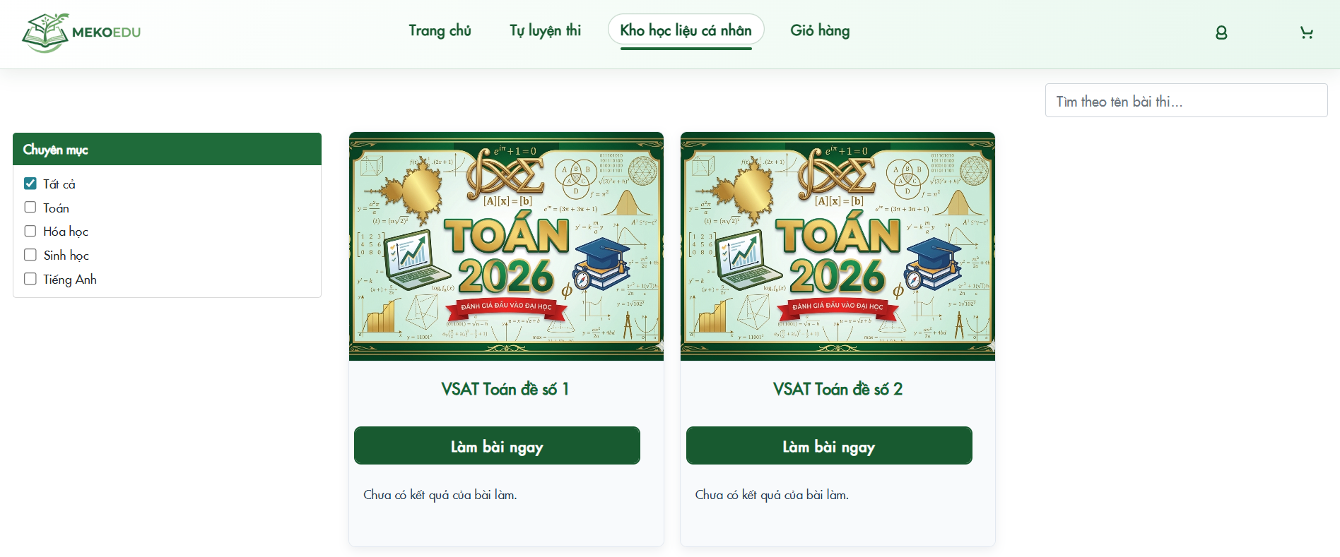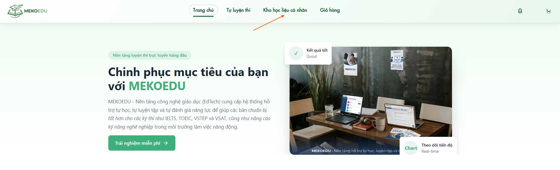 Thực hiện theo các bước dưới đây để truy cập và làm bài trong kho học liệu cá nhân.